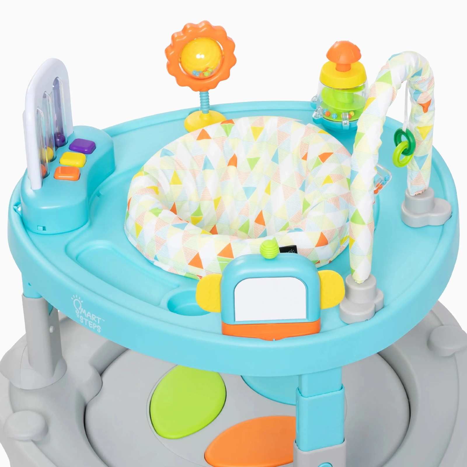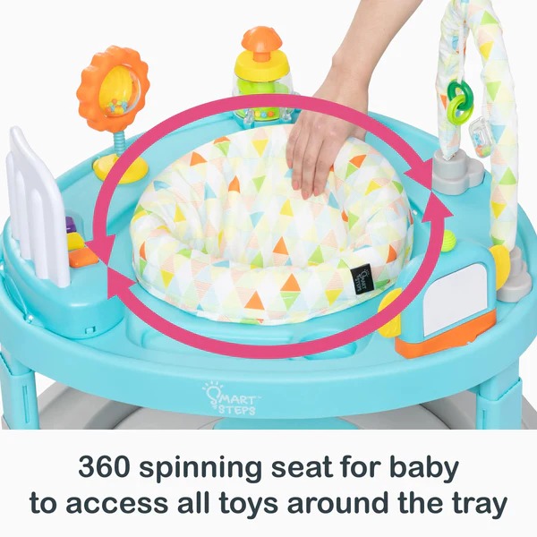 Este producto es solo online. El plazo de entrega es de 24 a 72 hs hábiles.El andador Smart Steps Bounce N' Dance 4 en 1 ofrece diversión y aprendizaje a la vez. Este emocionante andador incluye juguetes independientes y extraíbles que se pueden llevar a todas partes. Cuando el pequeño ya no quiera caminar, conviértalo rápidamente en un centro de actividades fijo gracias a sus innovadoras ruedas plegables. ¡La diversión continúa con la tabla de baile Tippy Tap, que emite sonidos al presionarla! Esta tabla se acopla a la base del andador y también se puede usar sola para que el niño juegue boca abajo.