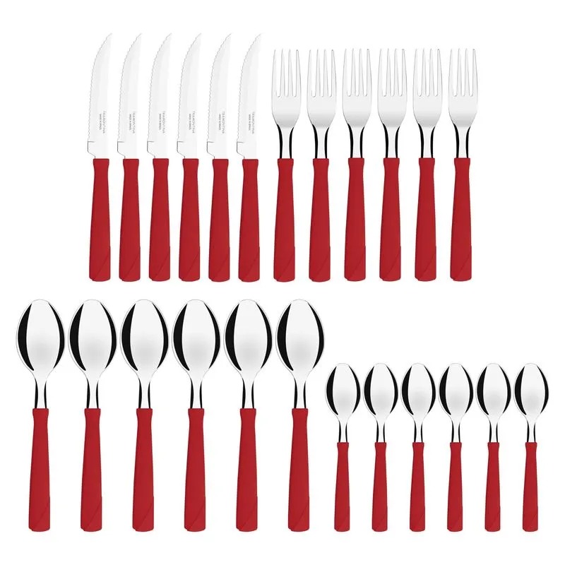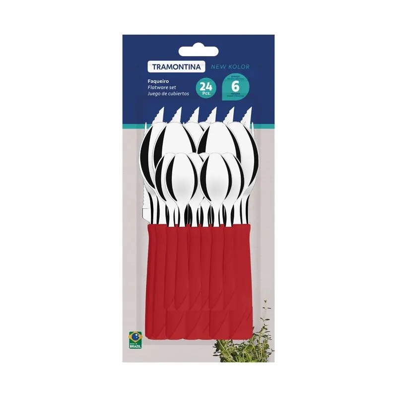 JUEGO DE CUBIERTOS TRAMONTINA 24 PIEZAS NEW KOLOR ROJO 23198/794