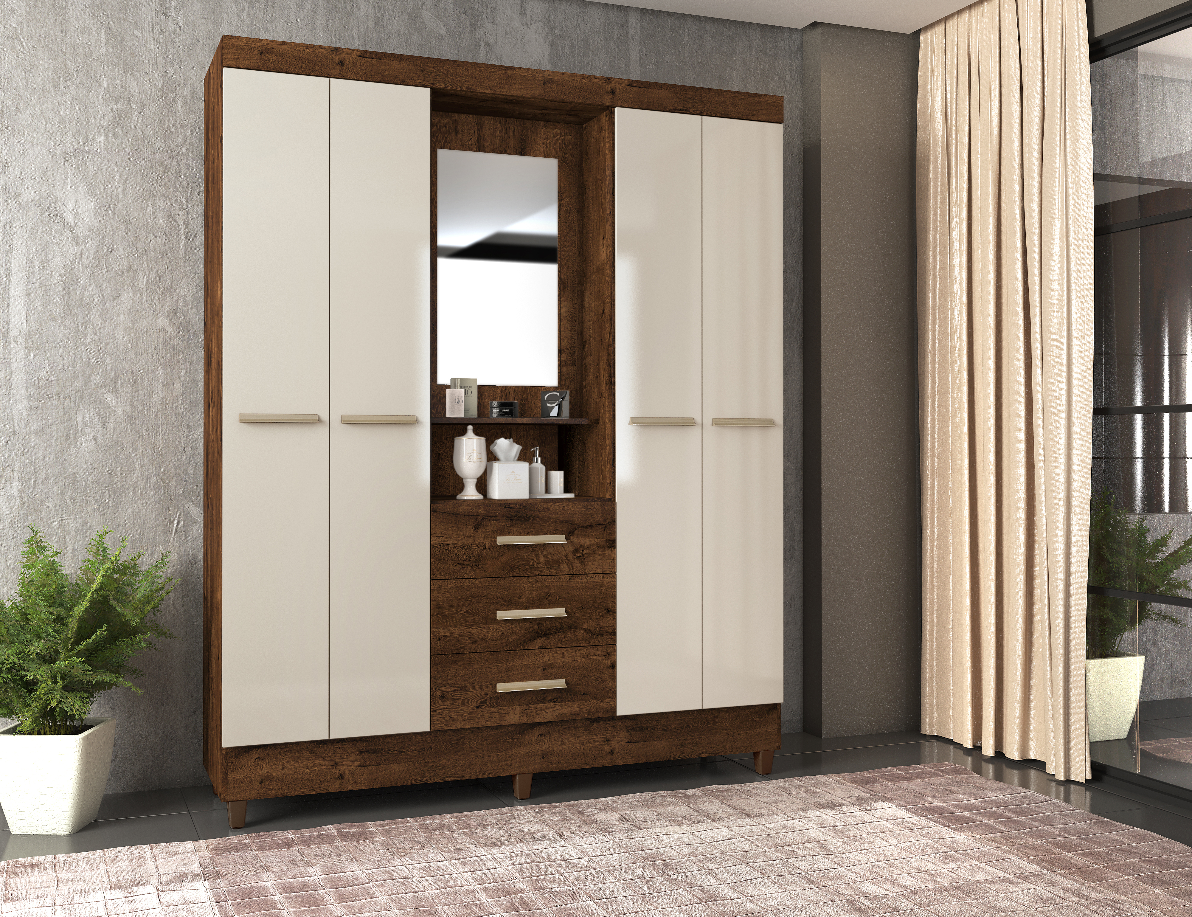 ROPERO SERENO 4PTAS C/ESPEJO RUSTICO MALBEC/OFF WHITE