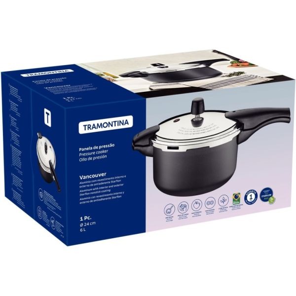 OLLA A PRESION TRAMONTINA 6L VANCOUVER TEFLONADO NEGRO TA20589/624