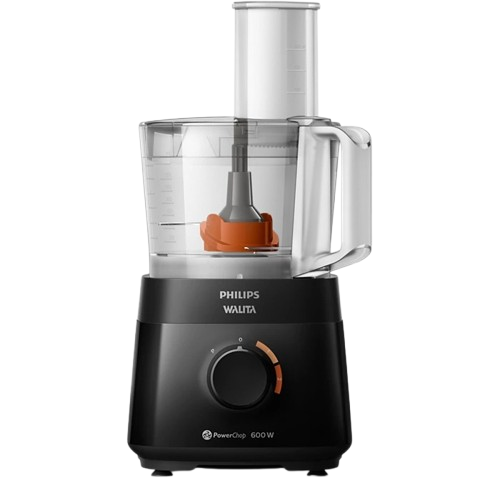 Conoce el Multiprocesador PowerChop con versatilidad, potencia para que tus recetas funcionen siempre. Es de 600W con 2 velocidades, más pulso. Sigue la función de colores para seleccionar la velocidad por el color de los accesorios, ¡de forma sencilla e intuitiva! Tarro multiprocesador de 1,5L, con tapa medidora. 3 accesorios: jarra de batidora de 2L*, exprimidor de frutas, cuchillo procesador PowerChop, tecnología exclusiva que combina 2 cuchillas con ángulos de corte perfectos, mucho más finos y precisos.