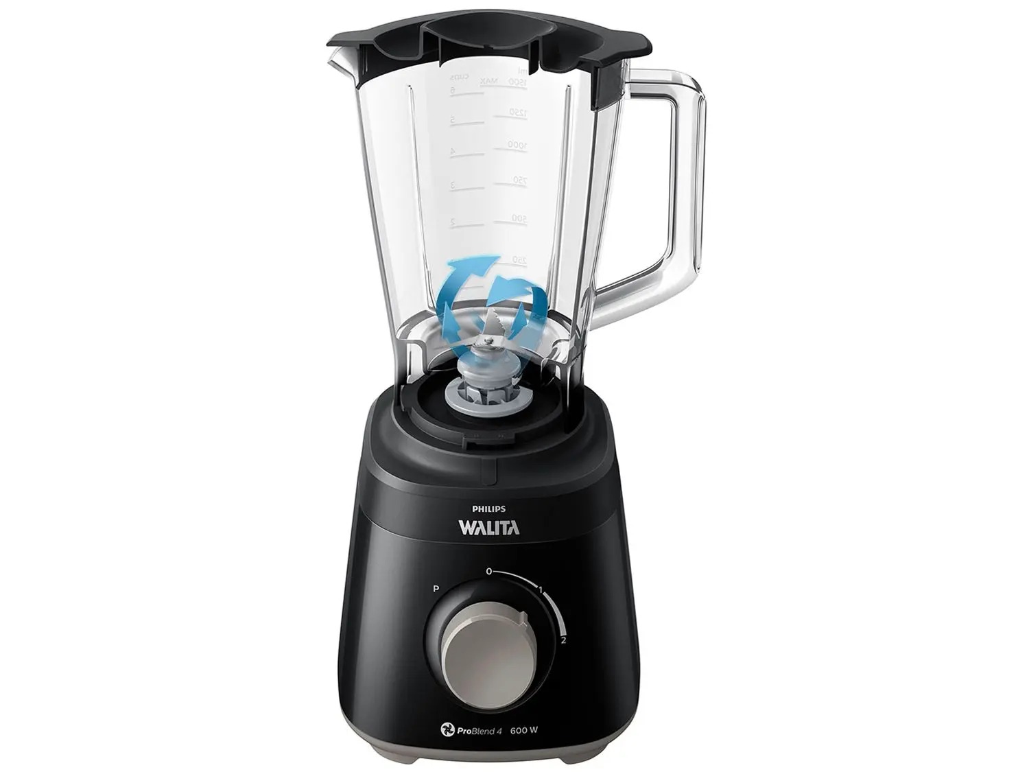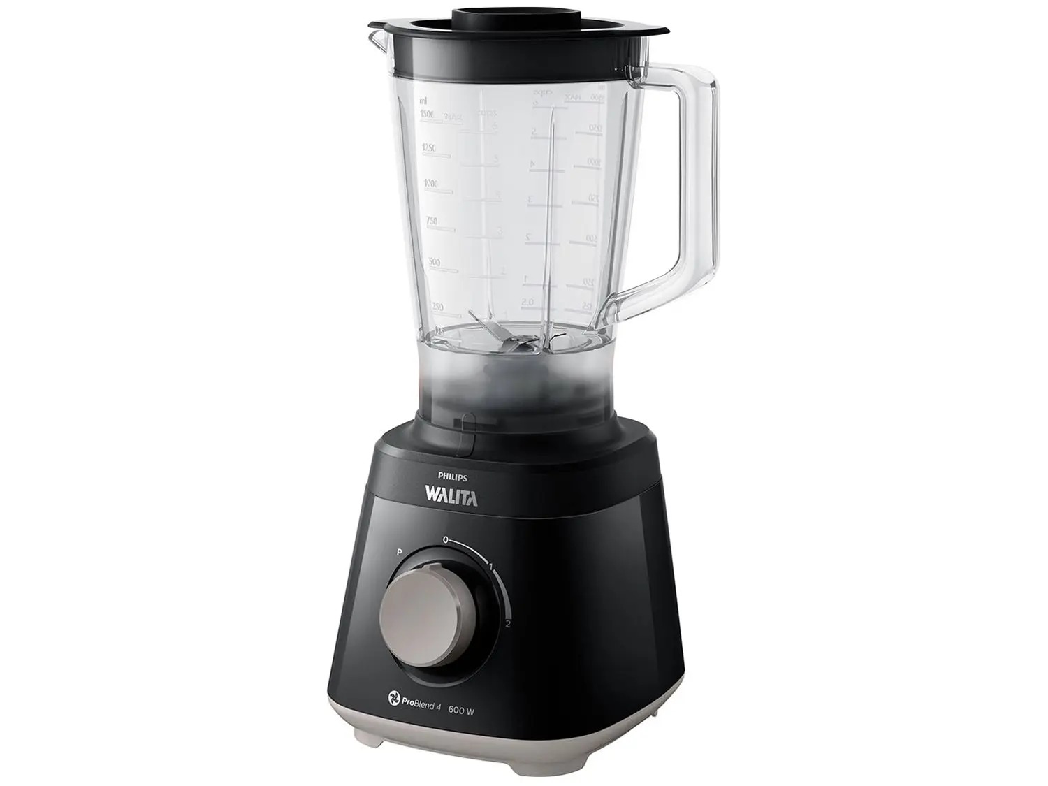 La licuadora Philips Walita Daily RI2110/30 es ideal para simplificar la preparación de diversos alimentos. Con 550 W de potencia, ofrece dos velocidades y función de pulso. Cuenta con una base de plástico negro y un vaso de SAN (acrilonitrilo estireno) con capacidad de 1,5 L y pico medidor. Sus cuchillas dentadas de cuatro puntas garantizan cortes precisos.