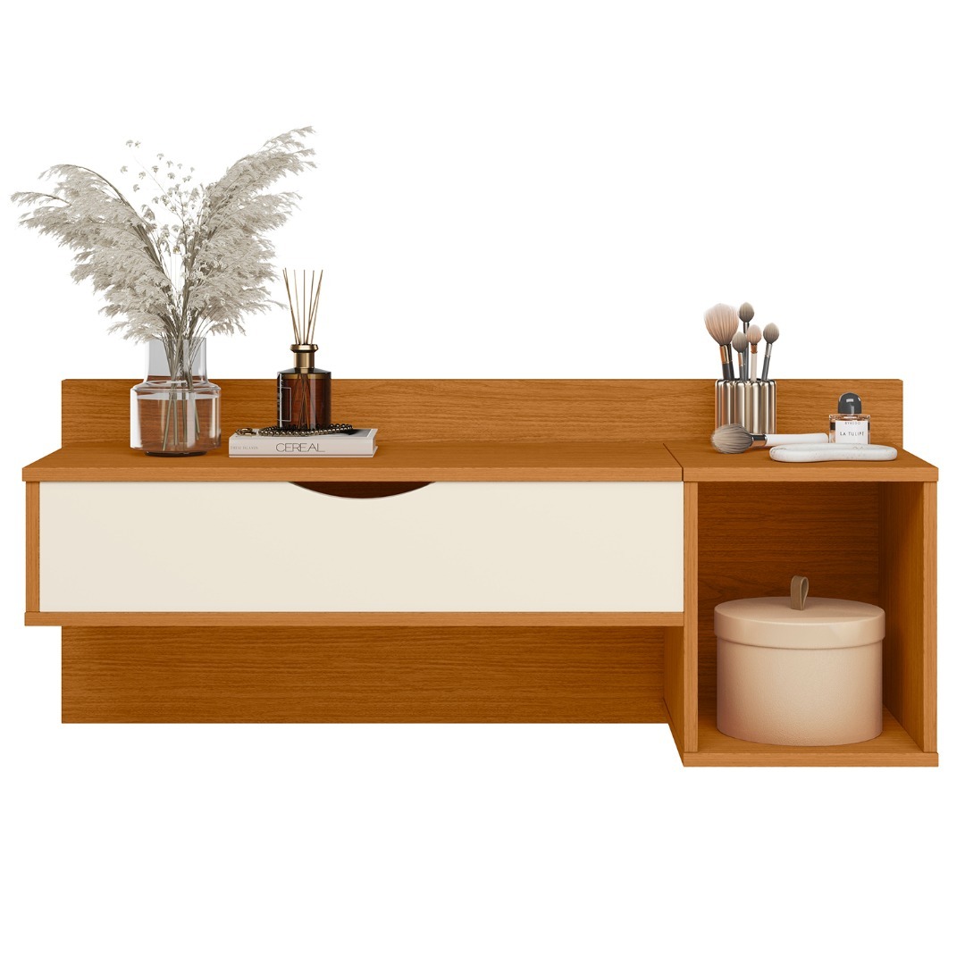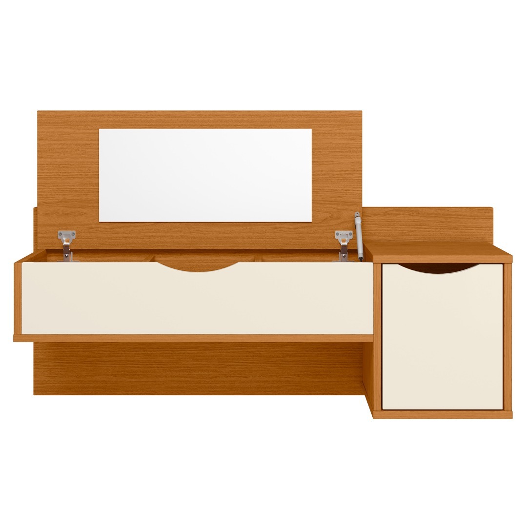 Este producto es solo online. El plazo de entrega es de 24 a 72 hs hábiles. Producto ArmableEl tocador Blush de Movelmax en acabado cinamomo mate combinado con off white es la opción ideal para quienes buscan un mueble práctico, moderno y con estilo delicado. Cuenta con una puerta basculante equipada con pistón de gas, que permite una apertura suave y segura. La puerta y moldura están mecanizadas, lo que realza los detalles del diseño y aporta una terminación refinada. Incluye espejo integrado, pensado para facilitar tu rutina diaria sin ocupar espacio adicional.